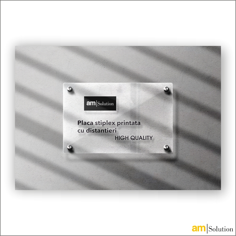 - Placa Stiplex cu Distantieri 70x100cm reprezintă o alegere inteligentă pentru a aduce un plus de profesionalism și vizibilitate în afacerea ta. Cu un design modern și o construcție atent realizată, acest panou captează atenția și transmite un mesaj puternic cu privire la identitatea și serviciile tale.